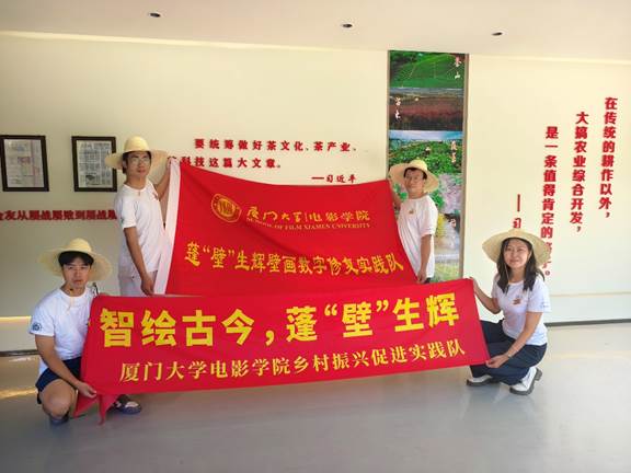 实践队队名蓬“壁”生辉,源自队伍与光泽县崇仁乡明清古街的壁画修复合作。团队自去年起就紧密关注光泽崇仁壁画数字修复工作,此前多次赴崇仁乡收集素材与资料,就壁画数字修复工作与乡干部展开深入探讨。