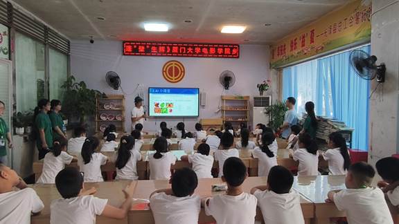 实践队员、数字媒体技术专业本科生陈毅为孩子们上了一节既专业又通俗易懂的人工智能科普课。让零基础的小朋友们了解到人工智能前沿技术的训练底层原理和在生活中的广泛应用, 70多位小朋友们听得津津有味,纷纷举手发言。
