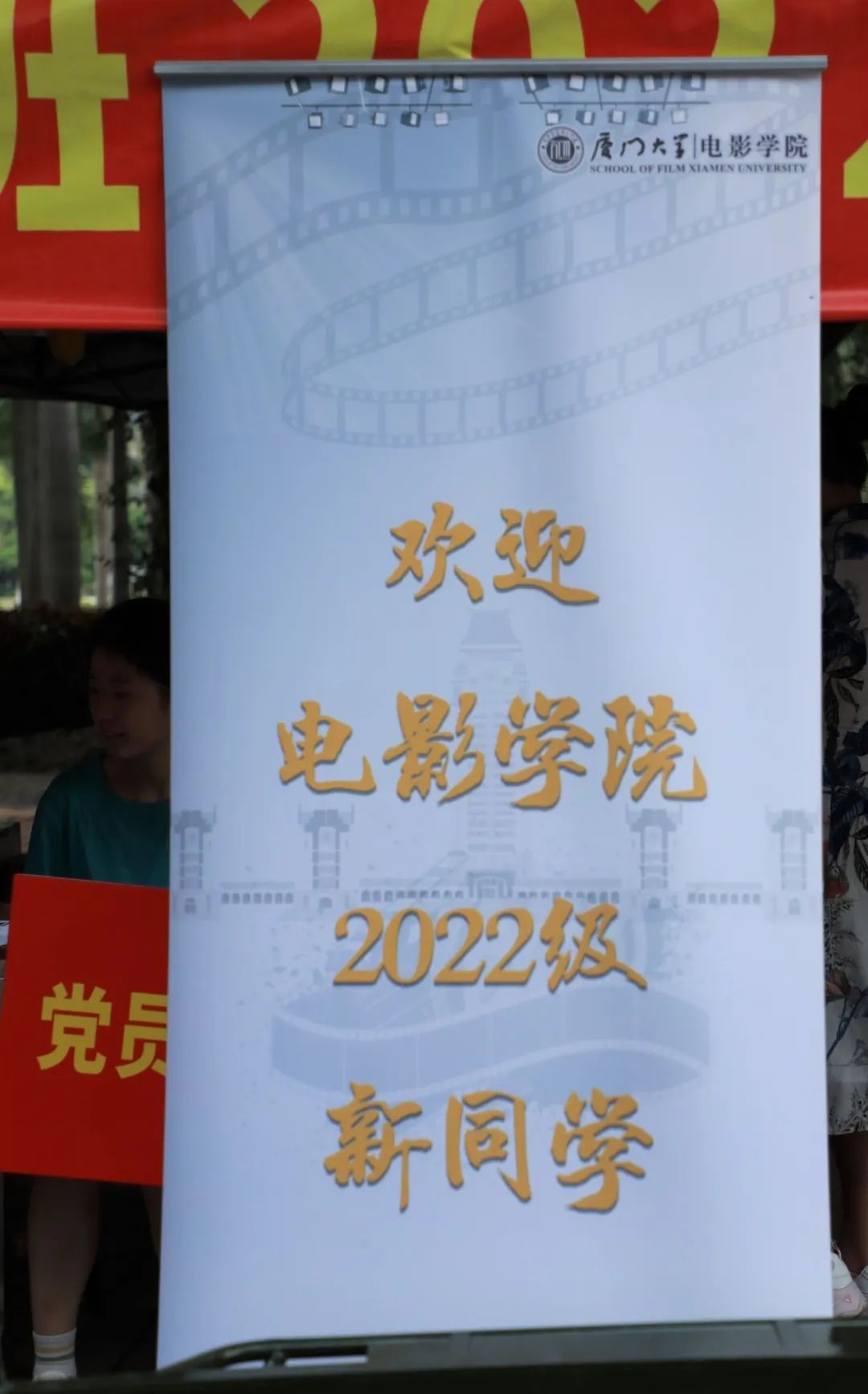 在迎新大本营和宿舍楼区域,学院设置了横幅与海报,热烈欢迎各位新生的到来。