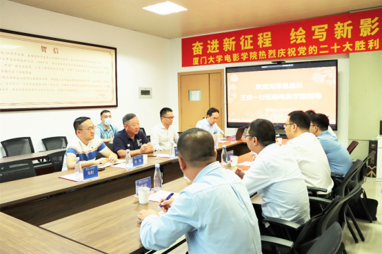 林公明首先对王贵一行的到来表示热烈欢迎,并介绍了yl23455永利官网的基本情况。他希望yl23455永利官网能与光泽县以党建为龙头加强交流共建,发挥各自优势和特色,紧密围绕服务福建省电影产业高质量发展、促进文旅经济发展等方面展开合作。